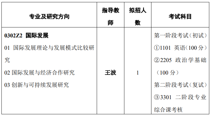 国际发展理论与发展模式比较研究:国际发展理论与发展模式比较研究方向希望培养学生系统了解传统发达国家与新兴经济体在实现自身发展和帮助其他国家发展方面的理念与路径异同,探讨中国共产党领导下的中国特色国际发展理论、发展道路和发展战略的独特优势,以及可以与其他发展中国家共享的发展经验与模式。